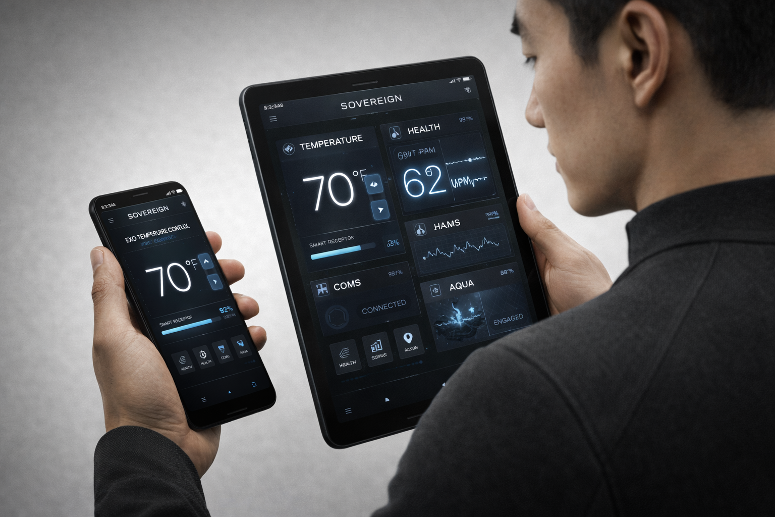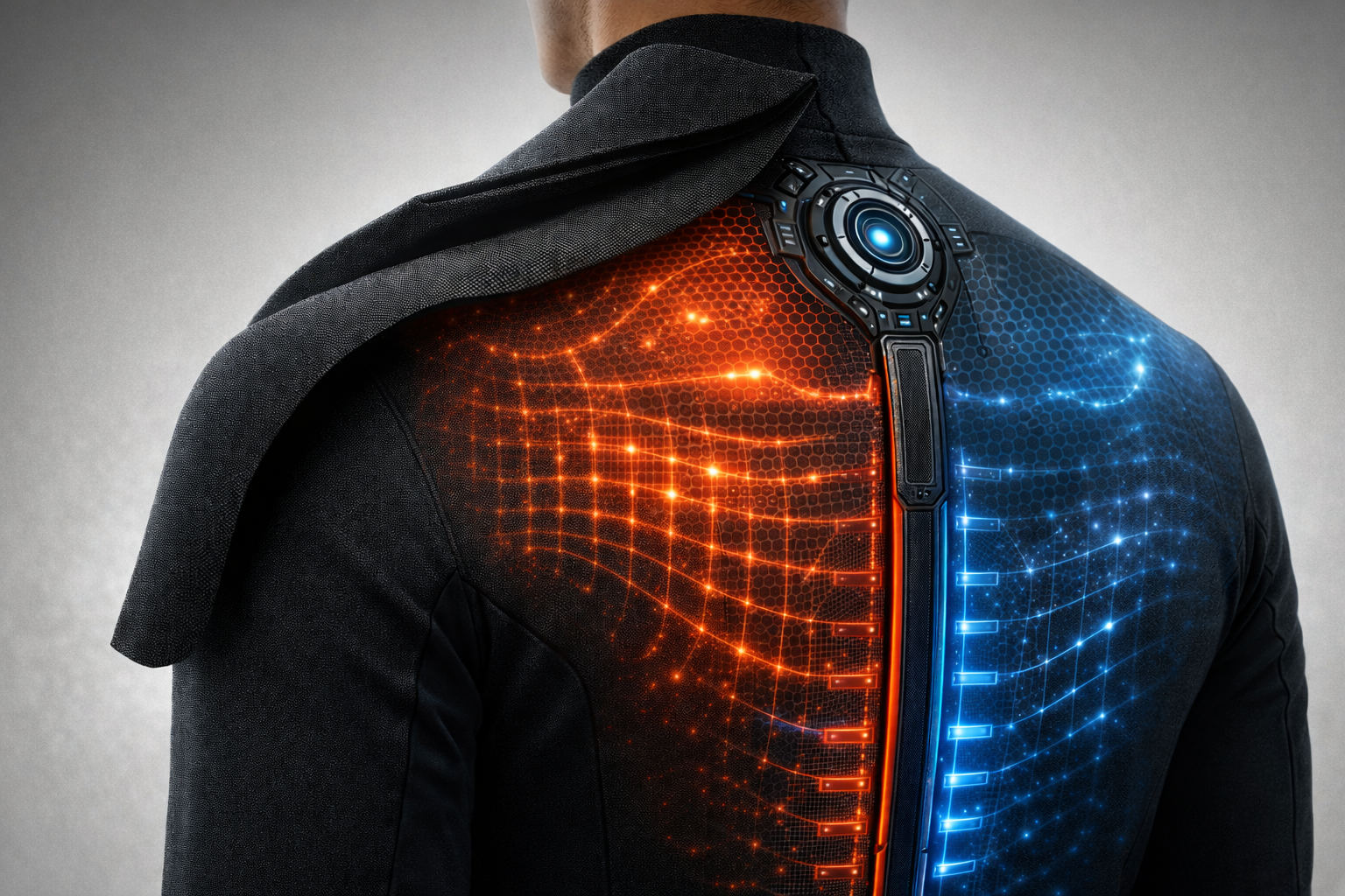 The heating and cooling functions of SOVEREIGN WEAR utilize Autonomous Environmental Regulation to thermoregulate microclimates within the suit via Functionality Strip execution of advanced metamaterial state augmentation. The Smart Fabric insulates temperature, filters pathogens and pollutants, and sustains optimal atmospheric conditions, enabling habitation across diverse terrestrial zones.